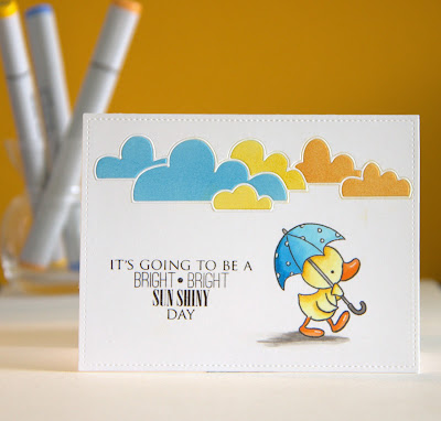 I started by stamping this cute little guy on some card stock and coloring him with copic markers.