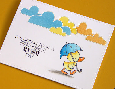 I then added the clouds and used the inlaid die technique after sponging them with distress ink. Then stamped the sentiment.