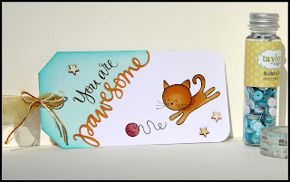 Here is my card. I stamped the cute little pup on the card and colored it with Copic markers. I added a little black enamel dot to the eyes so they pop a bit. Then I stamped the balloon and the sentiment and embossed it with clear embossing powder.